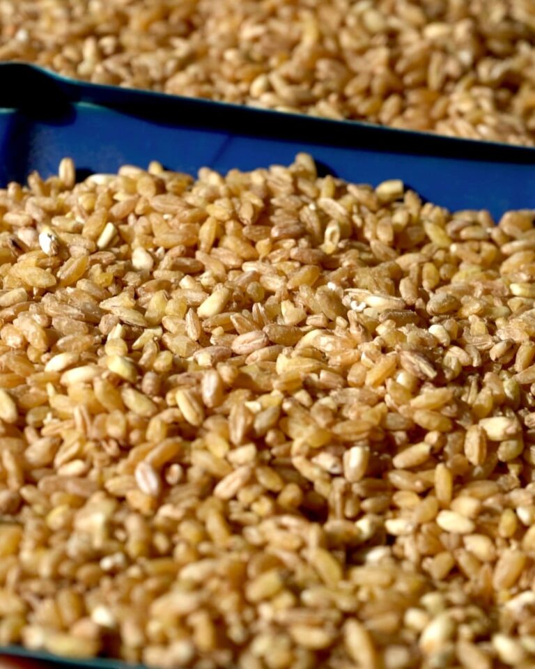 Non eseguiamo il passaggio decorticante unico perchéintaccherebbe la qualità nutrizionale della semola, andando a stressare eccessivamente il grano. Il doppio passaggio decorticante, invece, rimuove delicatamente gli strati più esterni del chicco (maggiore lentezza e maggiore minuziosità) raggiungendo così la mandorla farinosa, la parte più pura del frumento.